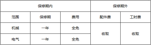 7)保修期限及費用(具體見下表)